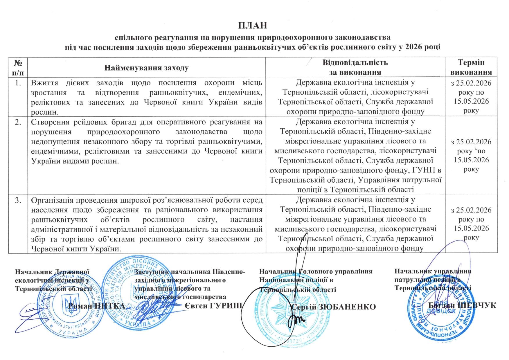 лісокористувачів області та служби державної охорони територій і об’єктів
